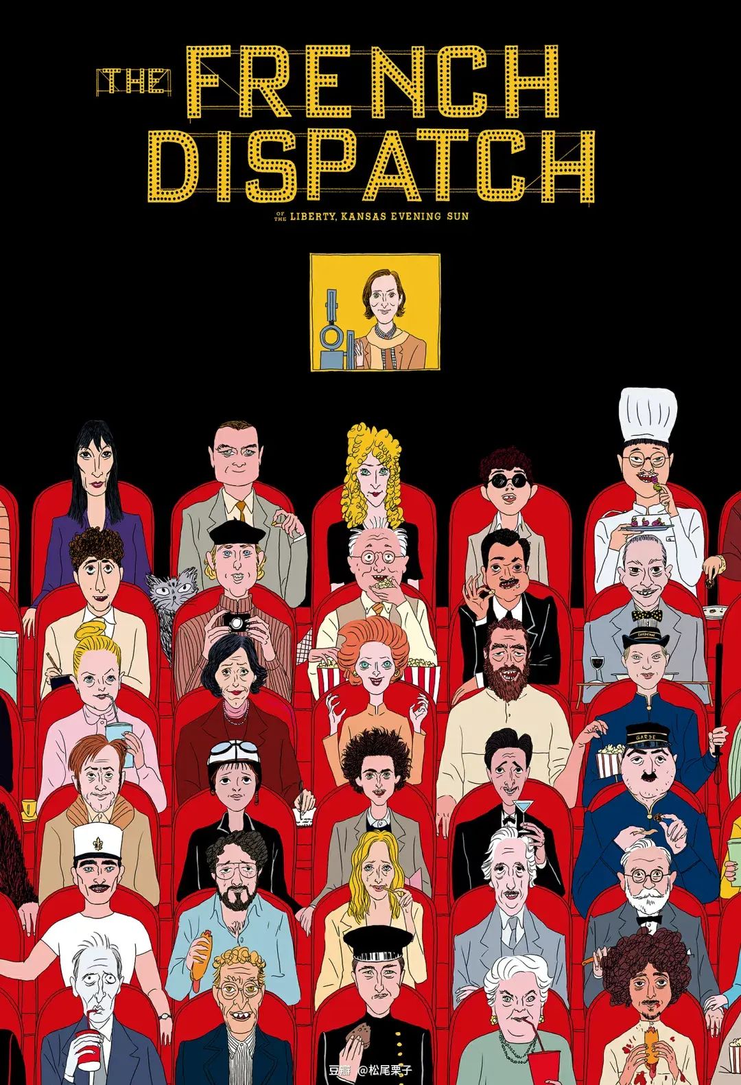 以我看了第一遍的解读来说,它是“写给凋零纸媒的情书💌”,另外韦斯·安德森谈过他的创作初衷,是对纽约客杂志和美国作家的致敬。